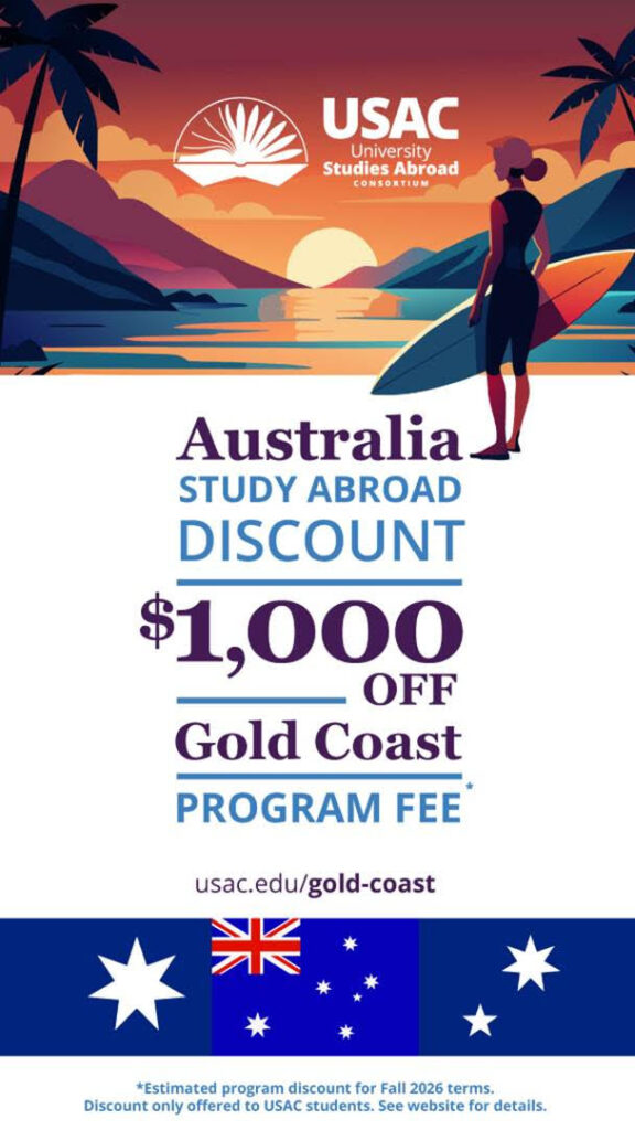As a reminder, the USAC Gold Coast Program offers two study options: the 30 credit point (~12 U.S. credits) or 40 credit point (~16 U.S. credits) program. Both provide flexibility and the opportunity to take part in additional academic and cultural experiences, such as community internships, the BusinessPLUS program, volunteer opportunities, and part-time work (depending on academic eligibility).