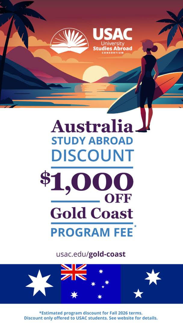 We are excited to announce a new program fee discount for the USAC Gold Coast, Australia program that you can also share with your students.